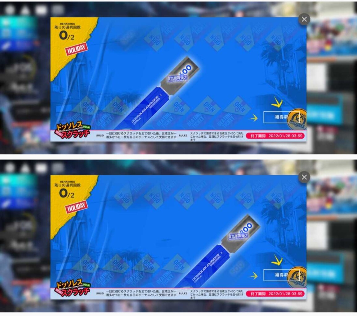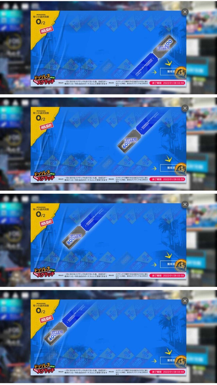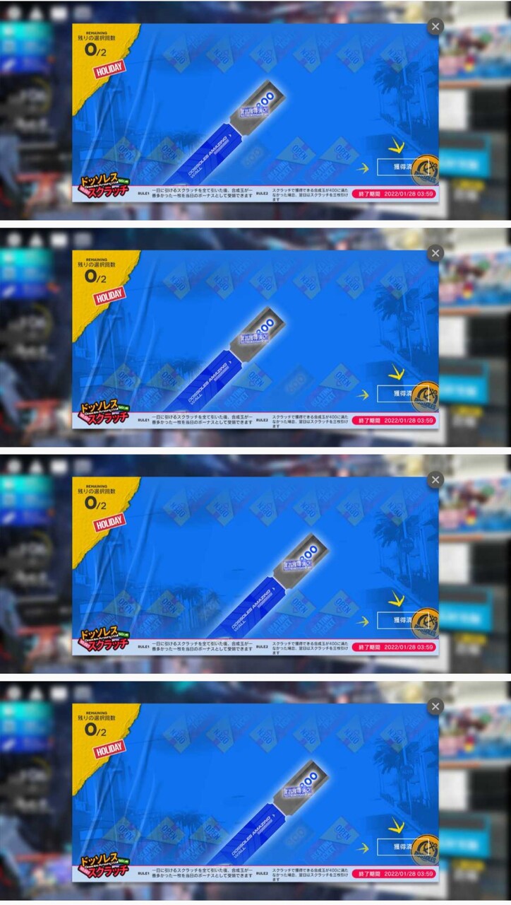 300以下引いたときは翌日3枚引けるじゃなくて2枚とも貰えるにしてくれ・・・運さえよければ収支トントンに出来るから(運が良ければ300なんて引かないとか言わない)